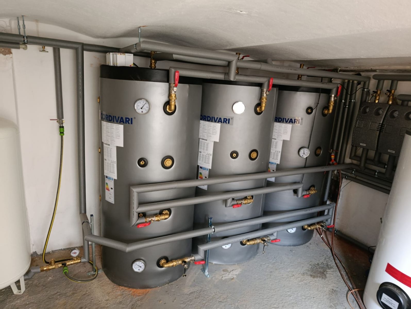 - kompletní realizace vytápění - radiátory, 12 kondenzačních kotlů se zásobníkem ohřevu TUV